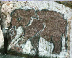 ja sogar als leider inzwischen verblasstes Riesengemälde auf einem Felsen
